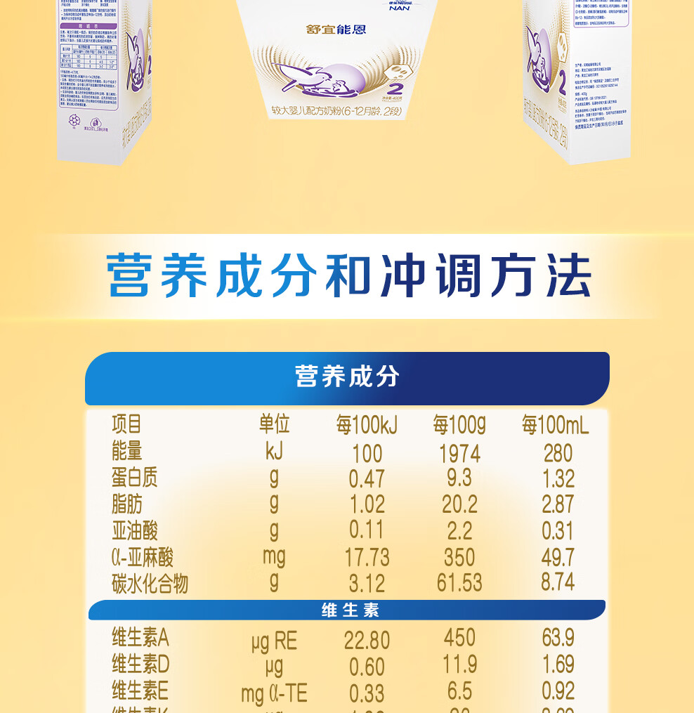 雀巢(Nestle)舒宜能恩2段(6-12个月适用)400g婴儿A2奶粉能恩新国标升级版