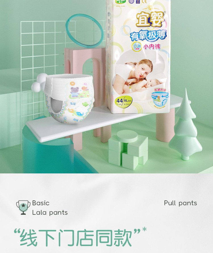 宜婴拉拉裤纸尿裤有氧极薄系列小内裤干爽婴儿尿不湿训练裤男女通用有氧极薄XL码44片【拉拉裤】