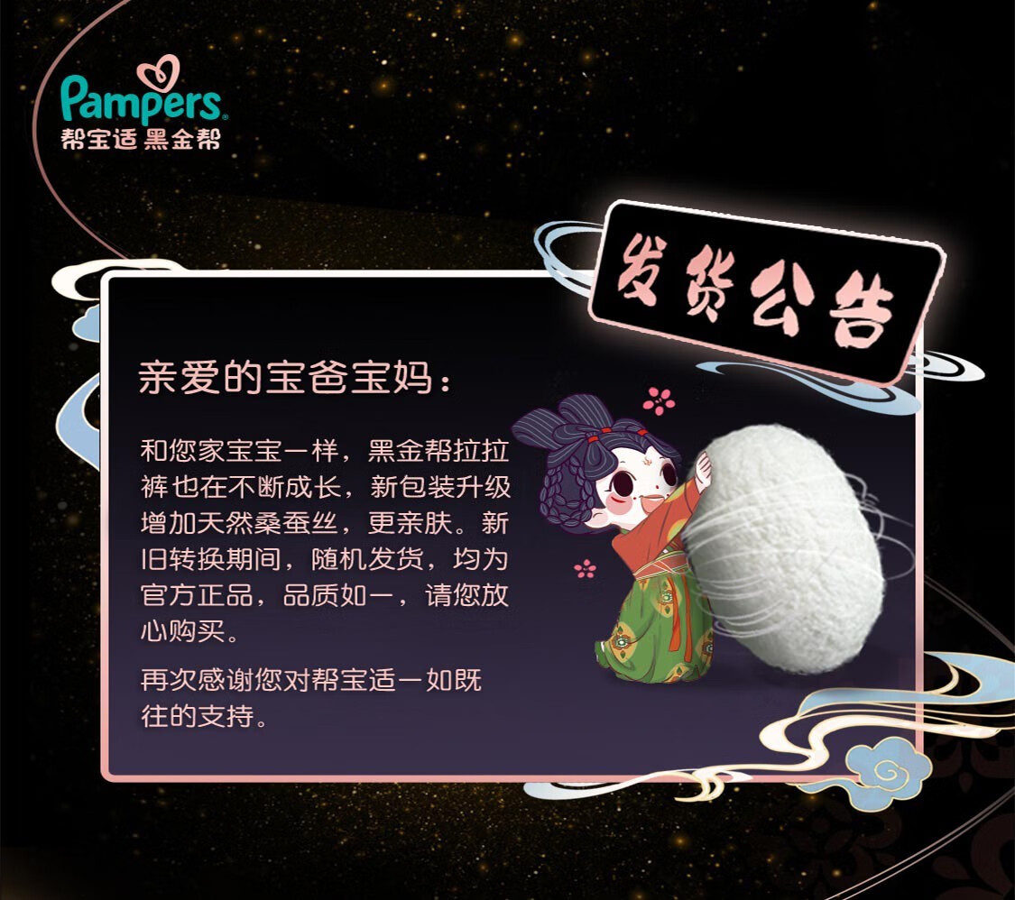 帮宝适(Pampers)【当天发货】黑金帮炫金帮奢宠真蚕纸尿裤系列试用装黑金帮NB3片(0-5kg)
