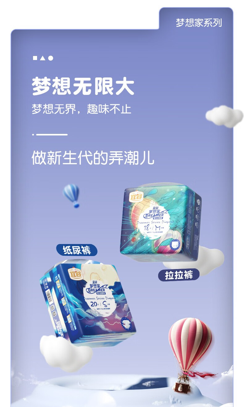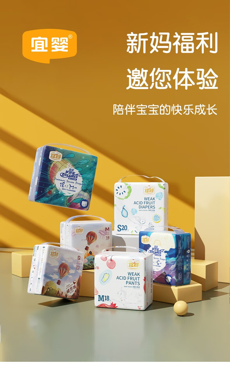 宜婴迷你小包装尿不湿多尺码可选梦想家纸尿裤NB22片【5kg以下】