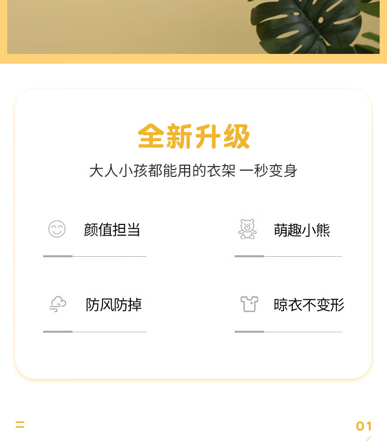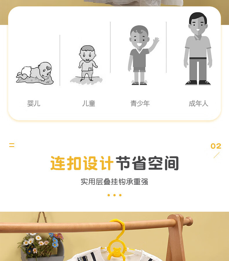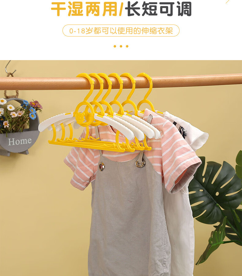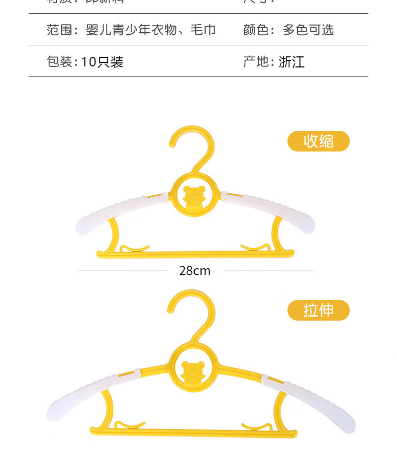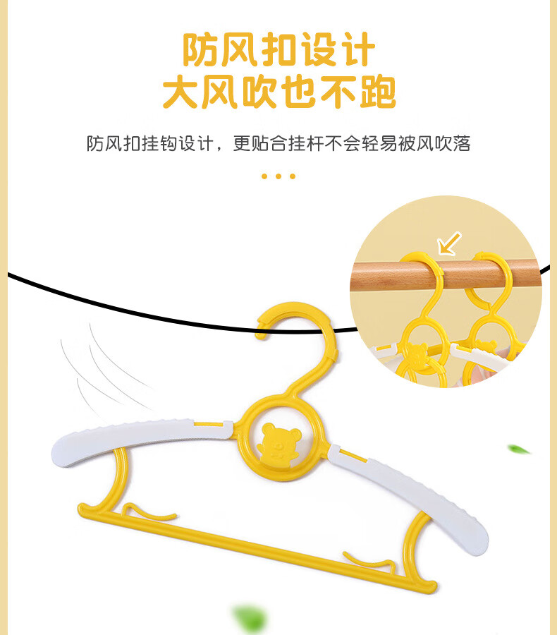 COOKSS儿童衣架婴儿多功能晾衣撑子宝宝家用防滑晒衣钩可伸缩收纳10个装