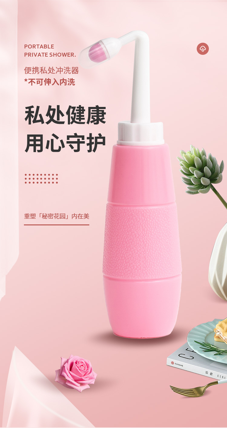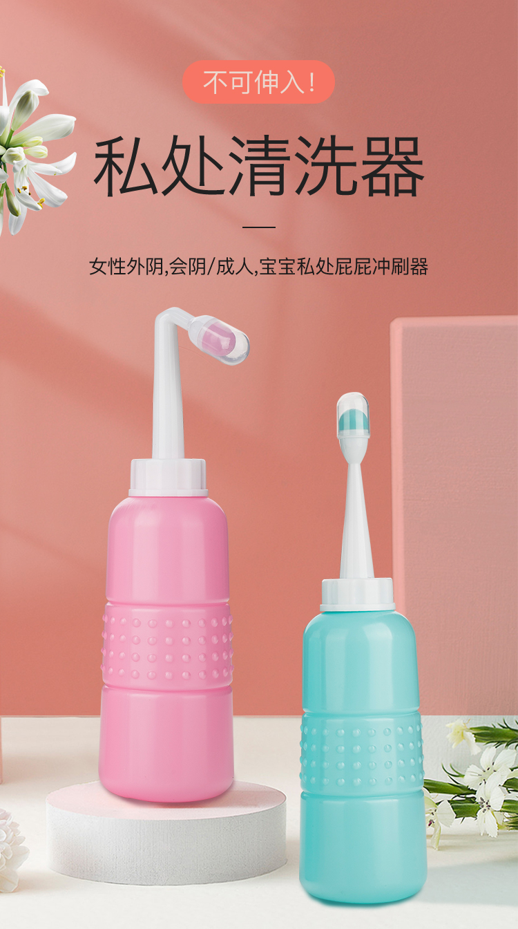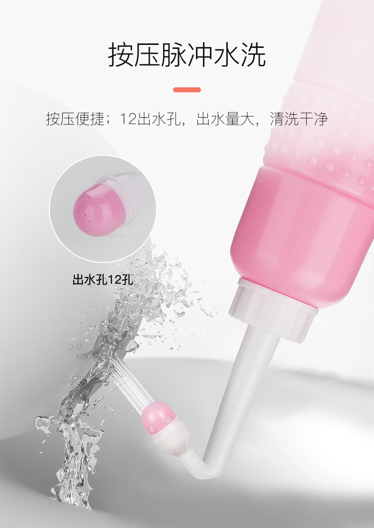 COOKSS会阴冲洗器孕妇私处冲洗器妇婴外会阴便携清洗器婴儿洗屁股神器产后妇洗器-粉色(弯头+直头)
