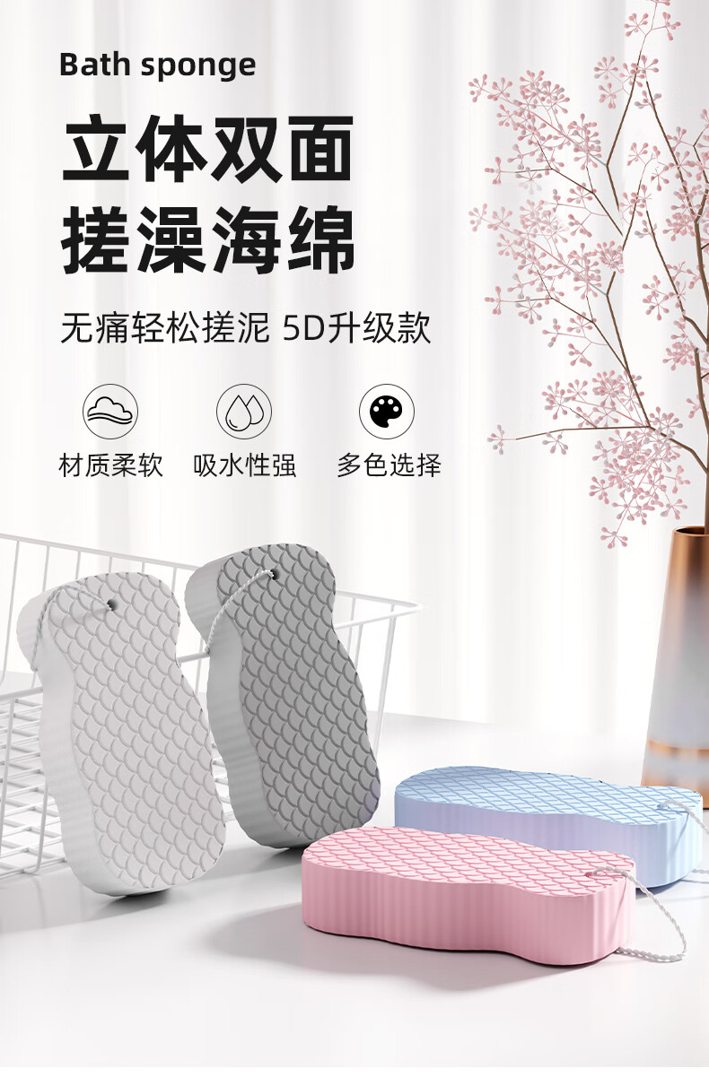 COOKSS婴儿洗澡搓澡海绵宝宝洗澡神器儿童搓澡巾沐浴球搓背灰+白两个装