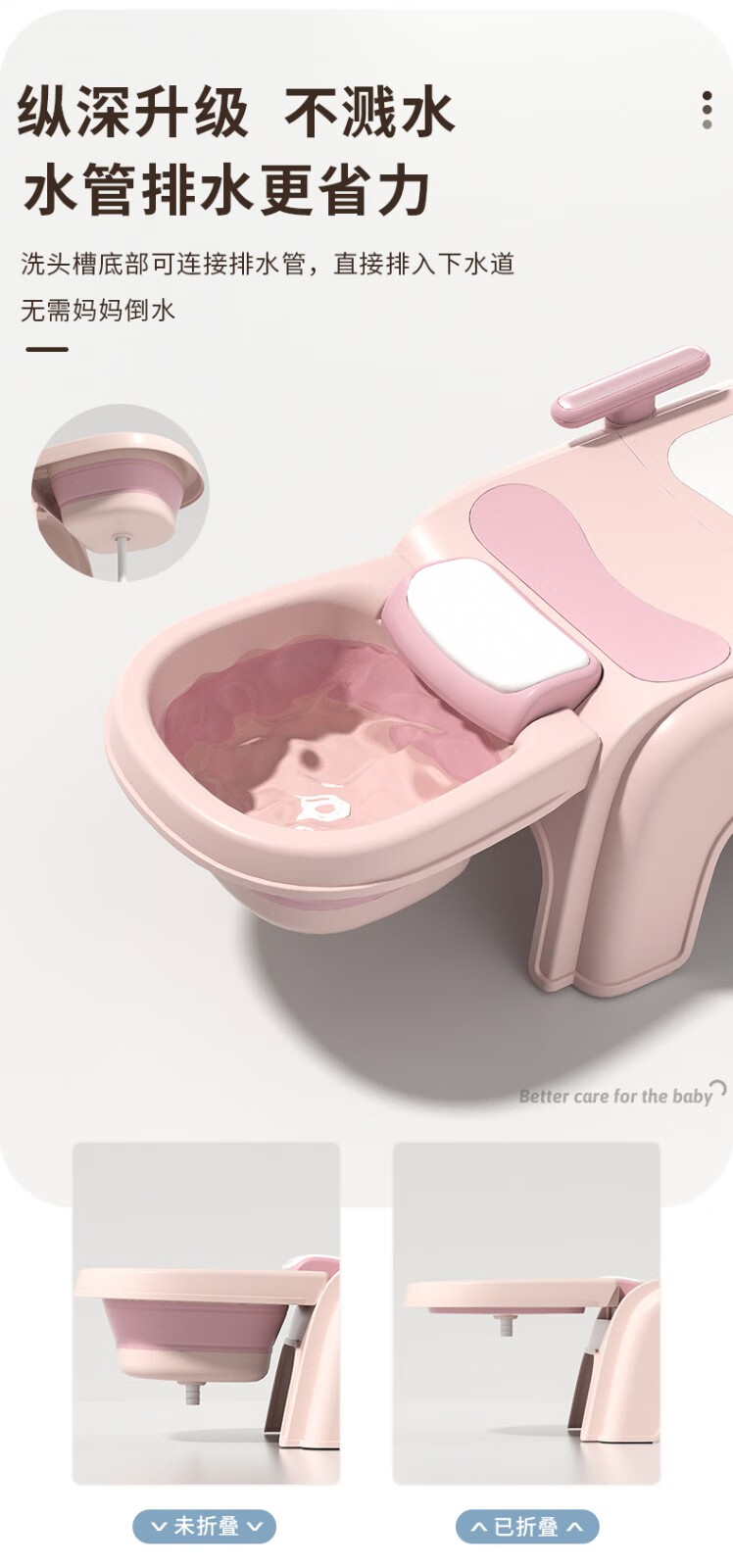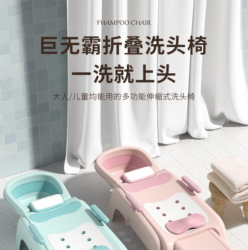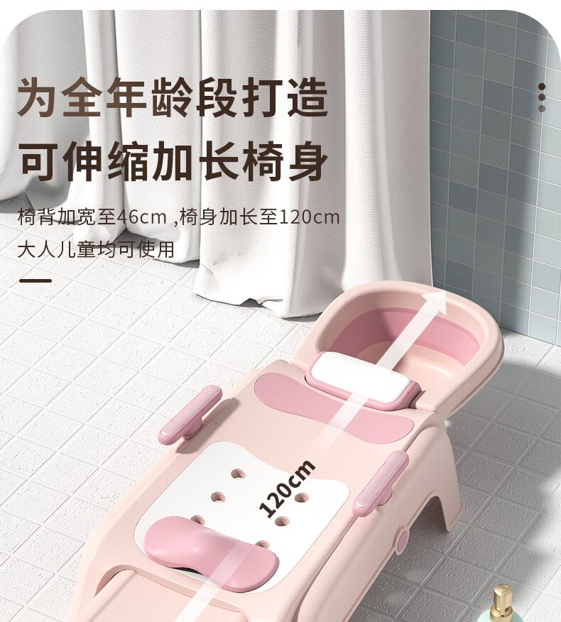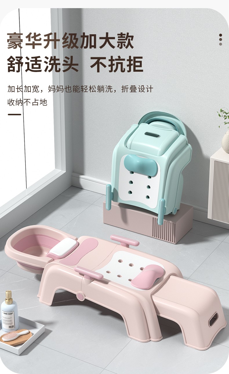 劳可里尼(NOCOLLINY)儿童洗头躺椅可折叠洗头床孕妇洗头椅婴幼儿洗头神器成人家用贝壳粉(送皇冠洗头杯)