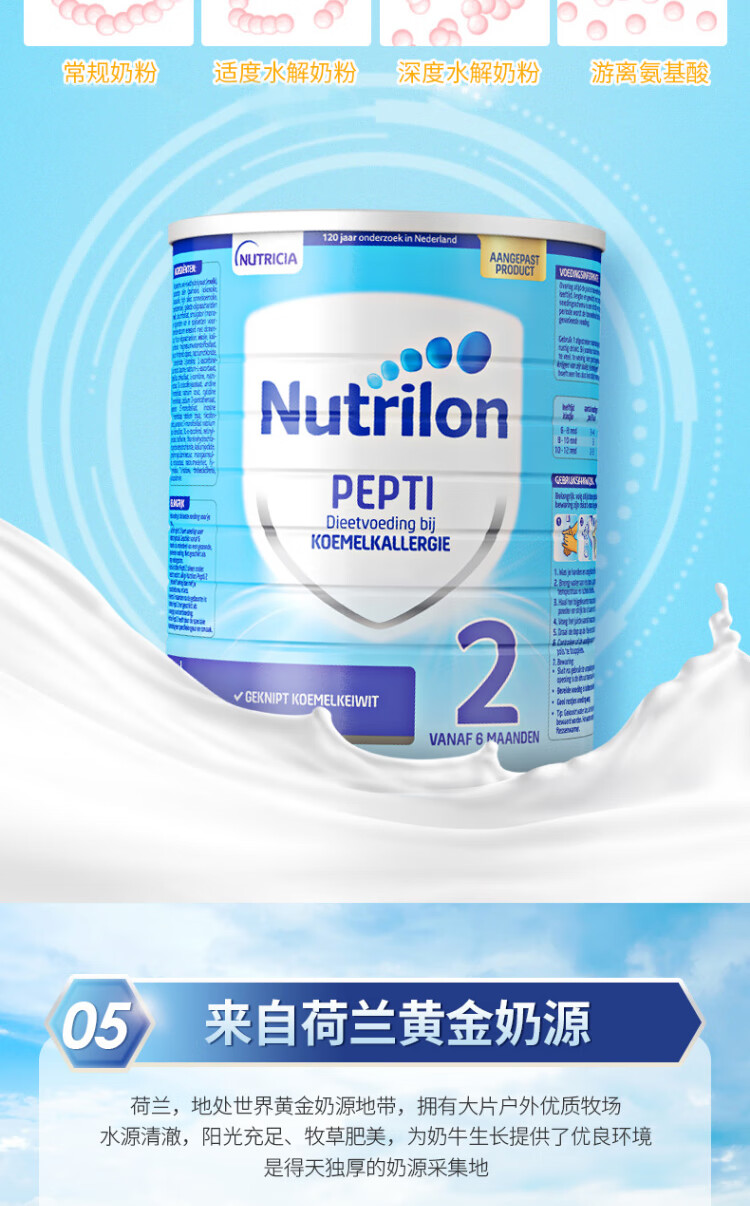诺优能(Nutrilon)荷兰牛栏Pepti深度水解婴幼儿配方奶粉2段(6-12个月)800g